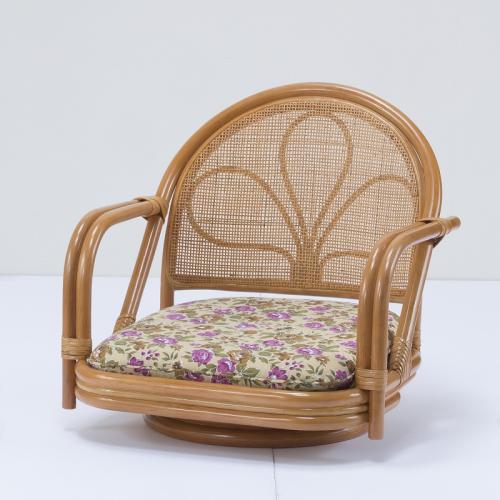 〈東京ラタン〉天然籐肘付回転チェア ロータイプ