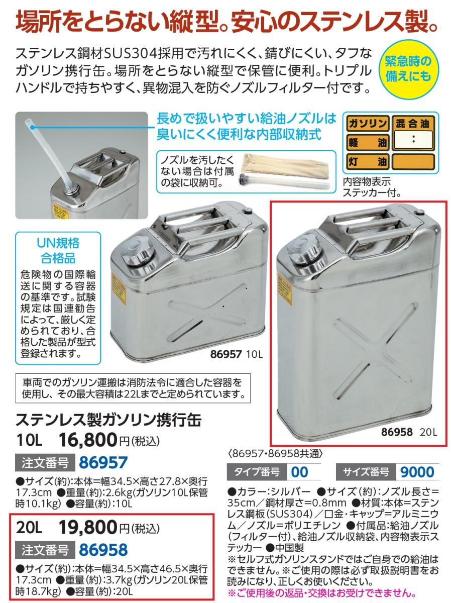 ステンレス製ガソリン携行缶 20L
