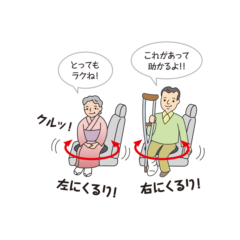 シートが滑らかに回転し乗り降りをサポート! 座って、シートごと回転。身体の向きがラクに変えられます。福祉の国デンマークで20年以上も愛されている商品です。 ●カラー:グレー ●サイズ(約):直径40×厚さ2cm ●重量(約):230g ●材質:表面=ポリエステル(ベロア)/内側=ナイロン、他 ●中国製 ※運転席での運転中のご使用はおやめください。