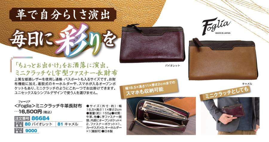 3. <Foglia>ミニクラッチ牛革長財布