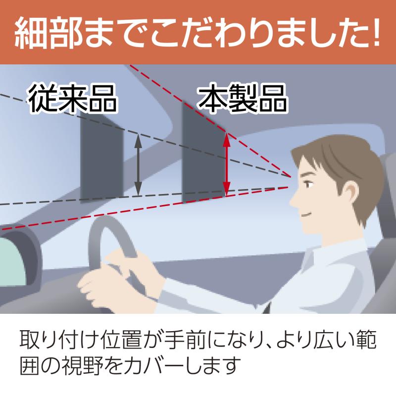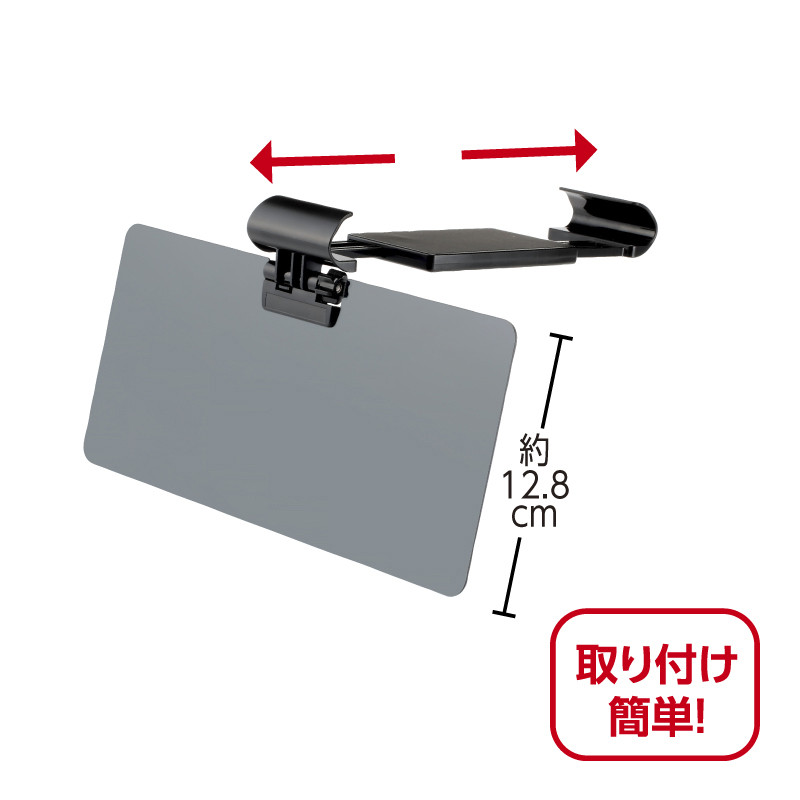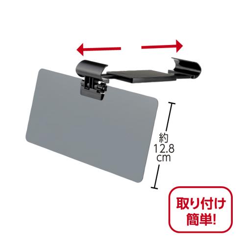 視界は確保、ギラつきはカット。より広範囲の視野をカバー。 サングラス用のレンズが乱反射のギラつきや照り返しを抑え、クリアな視界を確保します。取り付け位置を見直し、従来品よりも視野が広くなりました。●サイズ(収納時外寸・約):幅30×高さ14.7cm(取付部含む)×厚さ4.6cm ●重量(約):164g ●材質:ポリカーボネート、POM樹脂、他 ●可視光線透過率(約):18% ●紫外線透過率:1%以下 ●偏光度(約):97%以上 ●日本製 ※純正サンバイザーの厚さが2.4cm以内、奥行14.8~29.2cmまでの車に適合します。 ※偏光サングラスとの併用は避けてください。※夜間及びトンネル内などでは使用しないでください。