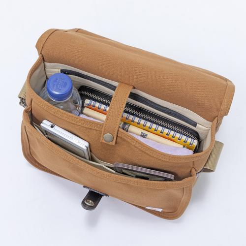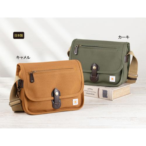 豊岡生まれ。収納力も自慢。 丈夫な8号帆布を、日本有数の鞄産地、豊岡の職人が丁寧に仕上げました。 ●サイズ(外寸・約):幅26×高さ19×厚さ12.5cm/ショルダーベルト長さ=74~129cm( 着脱不可) ●重量(約):370g ●素材:表地=綿(帆布)、牛革、他/裏地=綿 ●仕様:フラップメインコンパートメント(内部にファスナーポケット×1)/前面=フラップ下ポケット(内部にオープンポケット×2)、ファスナーポケット×1/側面=カラビナ×1/背面=オープンポケット×1 ●日本製
