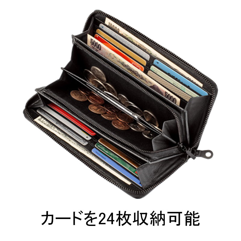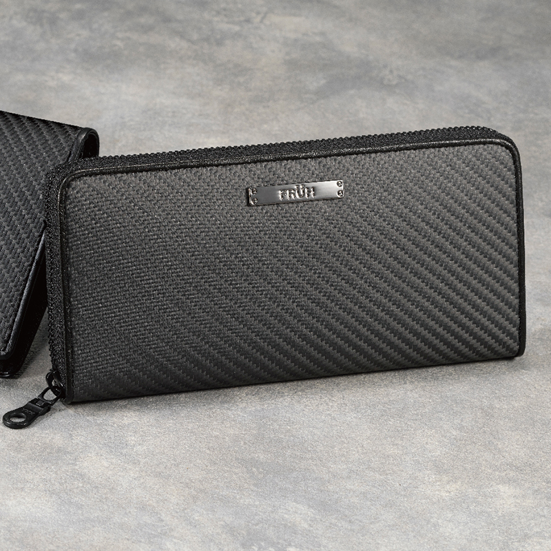 鉄の約10倍の強度※1を誇るサラリと爽やかな リアルカーボンを使用。 宇宙開発やモータースポーツなどでも使用されるリアルカーボン(炭素繊維)の精悍な質感が印象的。収納や構造にもこだわりました。 ●カラー:ブラック ●サイズ(外寸・約):幅20×高さ9.5×厚さ2.5cm ●重量(約):200g ●材質:表地=カーボンシート(炭素繊維、綾織り)、他/裏地 =牛革、レーヨン、他 ●仕様:札入れ×2、ファスナー式小銭入れ×1(2層構造、オープンポケット×1)、カード入れ×24、オープンポケット×2 ●ベトナム製