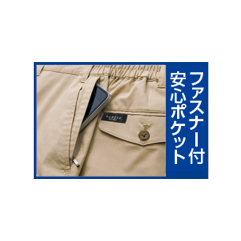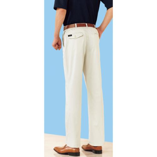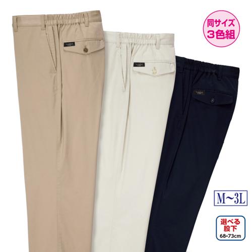 ラクラク、スッキリ、動きやすい。「こんなパンツが欲しかった!」 ●素材:綿50%、ポリエステル46%、ポリウレタン4% ●仕様:ウエスト両脇ゴム、両脇ポケット、左側ファスナー付ポケット、両後ろポケット、ウエストボタン留め前ファスナー、ノータック ●セット内容:ベージュ、アイボリー、ネイビーの同サイズ3色組 ●洗濯機可(ネット使用) ●中国製 ※ベルトは付属しません。