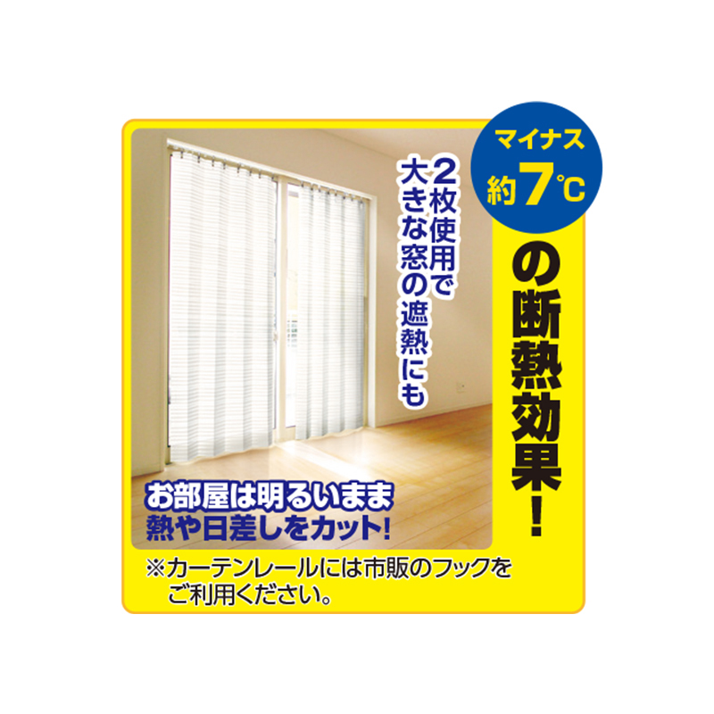 涼し気なレースで、しっかり断熱。 インテリアにもなじみやすく、いろいろな用途で使用できます。 ●カラー:ホワイト ●サイズ(1枚・約):幅95×高さ230cm ●重量(1枚・約):380g ●材質:ポリエステル100% ●紫外線遮蔽率(約):91%(厚地部分) ●洗濯機可(ネット使用) ●日本製 ※フック、伸縮ポールは付属しません。 ※カット後の返品・交換はお受けできません。