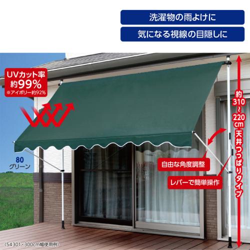 気になる陽射しや視線をカット。突っ張り式で簡単設置。 ●サイズ(約):幅300×高さ220~310cm(つっぱり式)/スクリーン=幅286.5×長さ200cm(最大)/すだれ=幅286.5×長さ98cm ●重量(約):10.5kg ●材質:フレーム=スチールパイプ、アルミパイプ/生地=ポリエステル100% ●組立参考時間(約):大人2人で30分 ●中国製 ※組立て・設営を行う場合は、必ず2人以上で行ってください。 ※お届けまで約3週間かかる場合があります。 ※組立開始後の返品・交換はできません。