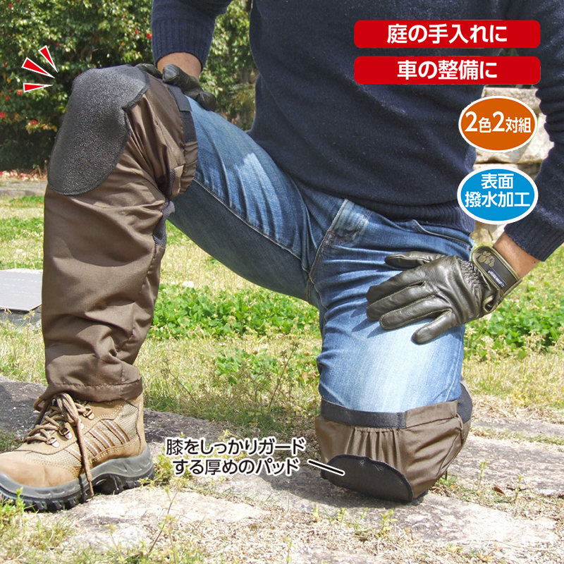 膝をついても安心。痛くない汚れない。 膝をつく機会の多い作業に重宝。さまざまな場面で活躍します。 ●サイズ(約):全長50cm/適応膝周り=35~50cm ●重量(片足・約):70g ●材質:ポリエステル、ポリウレタン、合成皮革、他 ●仕様:膝上=面ファスナー/裾部=ファスナー/ひざ裏部=メッシュ ●セット内容:ブロンズ、ネイビーの2色2対組 ●手洗い可 ●中国製 ※ご使用後の返品・交換はお受けできません。